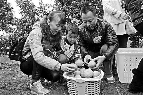 市民王攀家住江北区滨水城小区,夫妻俩平时忙于上班,很少陪孩子参加户外活动。“前不久在朋友圈里看到‘石盘水果合作社’的亲子采摘活动,一是因为可以免费参加,一家三口有玩有吃;二是因为我还不知道什么叫做春见,有些好奇,想陪孩子出来走一走,玩一玩。”王攀立即通过微信报了名,确定参与资格后,他还邀请了几个朋友,一起到石盘村游玩。