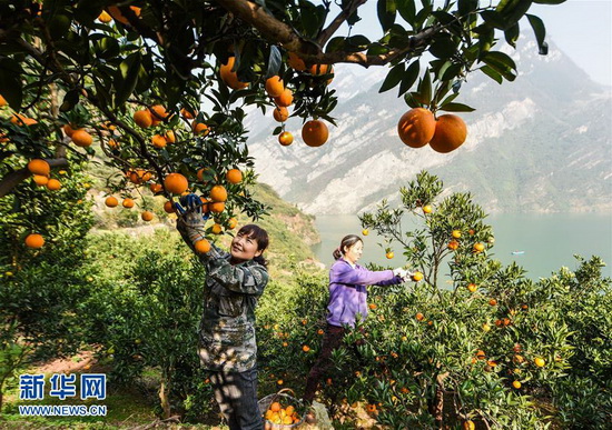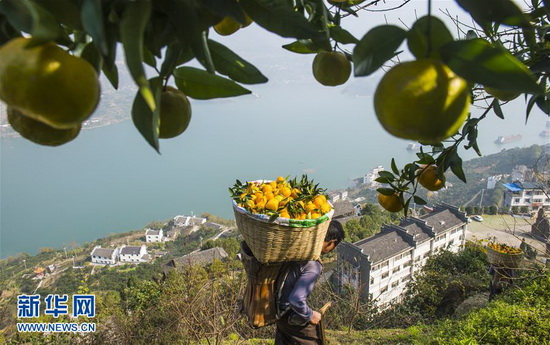 又到橙黄橘绿时,三峡库区一江碧水,两岸橙香。位于三峡库区的湖北省秭归县迎来脐橙丰收季,大量鲜橙及脐橙深加工产品起运四面八方。秭归县是中国脐橙之乡,拥有悠久的脐橙栽种历史。近年来,当地积极推广脐橙无公害生态种植,加大品改力度,进行脐橙深加工,发展电商销售,使脐橙成为当地产业经济的靓丽品牌。 新华社发(郑家裕 摄)