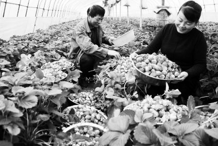 连日来,在建德市杨村桥镇官路村的田间,种植大户鲁建生夫妻俩忙着采收草莓。据悉,该市1.4万亩新安江牌草莓已全面进入采收旺季,因果实大、外观美、甜度高、污染少而畅销各地市场。 宁文武 摄