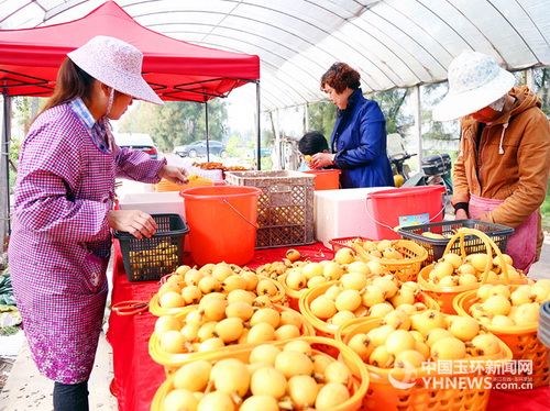 早在今年年初,该果业就采取连栋大棚保温及柴草加温,如今,200多亩白沙枇杷全面进入采摘期。看着挂满枝头的枇杷,“天一果业”负责人刘华贵运用互联网,将枇杷销售到周边县市及上海、杭州、宁波等地。同时,还开展游客自游采摘项目,日销枇杷达900公斤左右。