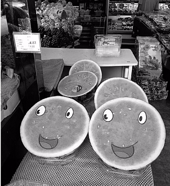 鲜丰水果杭州朝晖路店,切开后的西瓜包装挺逗人。
