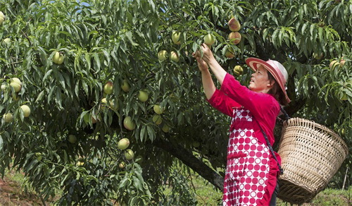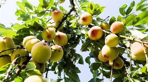 该“仙桃”为我区经作站自选品种“仙桃一号”,在雨台山仙桃专业合作社十余年的精心管理下,目前桃子集色质好、个头大、皮脆多汁、香甜可口等特点为一身,今年年产量已达10万斤。在生产过程中,工作人员几乎做到不施用化肥农药,已成功拥有国家认证的绿色食品标志,市民采摘可放心食用。