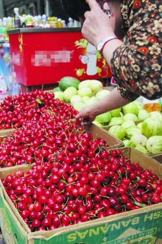 在合意大街上一家水果超市,正挑选樱桃的冯女士说,樱桃刚上市时价格高高再上,当时真不舍得买,现在价格太便宜了,每斤7元可以任意挑,吃着那叫一个过瘾。
