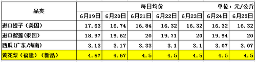下表为本期主要交易水果的每日均价表: