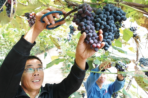 9月11日,铁岭清河文选有机葡萄园里硕果累累,一串串香甜的葡萄已经成熟。这些葡萄将按订单分成三部分直接进入超市高价销售:一部分在省内兴隆百货超市,全省约有40家;一部分与大果商合作,在广州、深圳等地高档超市销售;一部分在香港市场销售。通过农超对接,预计在明年春节前将200亩葡萄销售一空。