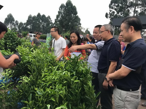 2017年9月22日―23日,四川省农业厅植检站站长李刚同志,副站长宁红、蒋辉、陈素清同志一行到达丹棱县,对丹棱县柑橘苗木及桩头进行了深入调查。眉山市植保植检站站长及工作人员、县农业局相关人员同行。对丹棱苗木交易市场(南苑市场)苗木及桩头进行了逐户调查,发现一户柑橘苗疑似感染溃疡病,且该批次苗木未取得检疫证,丹棱县农业局执法大队立即对其苗木进行扣押,并取样检查其病原菌,待检测结果明确后将依法进一步处理。随后前往丹棱县相关家庭农场查看苗木生长状态,未发现疑似检疫性病害症状。下一步将继续对近期种植的柑橘桩头进行了检查和取样,严防柑橘黄龙病在县域内发生和传播。