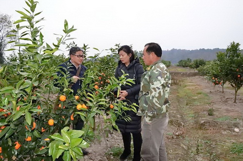 桂林市近期出现霜冻天气,对桂林市晚熟柑桔品种有一定影响。为更进一步掌握我市柑桔受灾情况,12月27日,该市水果办主任张欣一行2人在全州县农业局副局长唐昌科等人员的陪同下,走访了绍水镇、安和镇等地的沃柑种植户,详细了解当地沃柑受灾情况。
