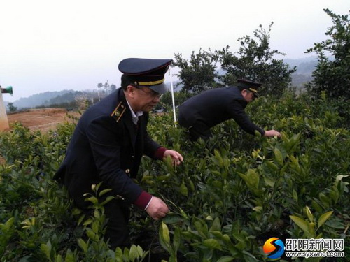 执法人员在检疫带有柑橘溃疡病的苗木