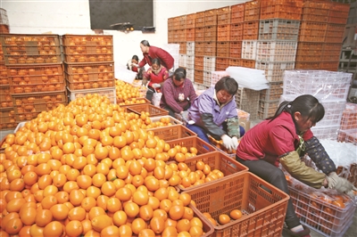 1月22日下午,在秭归县郭家坝镇三峡果业公司,100多名工人正在对果品进行分级、包装、装车,一派繁忙场景。