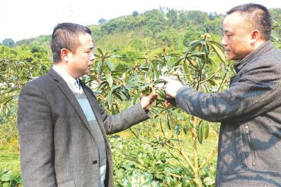 张健&#x;左&#x;向周奎&#x;右&#x;了解枇杷管护。