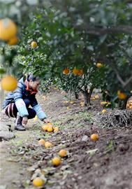 “这是卖剩下的橙子。”12月上旬,黄家书家里的橙子以7毛一斤的价格,销售一空。他还主动介绍起村子卖橙子的状况,这时黄贤燕忍不住用胳膊肘碰一下老黄,皱眉抱怨说,“没得根据的东西,不要乱说。”黄家书好像突然想起了什么,拍了一下嘴巴,“那是我听来的,千万不要写到报纸上哈。”