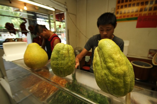 奇特的柚子被摆在店内观赏。图自台媒