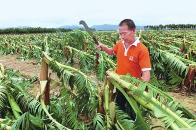 农民日报讯(记者 操戈 摄) 虽未正面登陆海南,但强台风“海燕”仍对全省农业生产带来严重破坏:瓜菜大面积受灾,橡胶、香蕉等热作物折断倒伏,大棚设施及畜禽栏舍损毁严重,部分畜禽死亡。特别是乐东、东方、陵水、三亚、保亭、琼海、文昌等市县农业损失尤为严重。