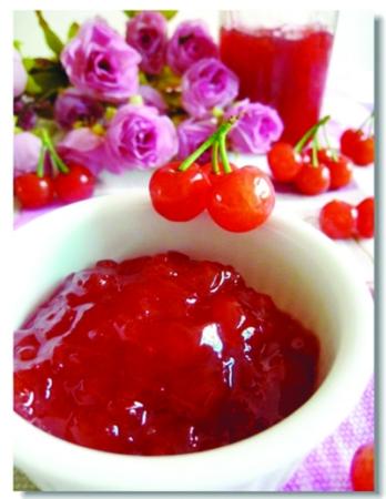 做法:1、樱桃洗净后,去掉蒂,去掉果核。(去果核的办法:用小刀在樱桃上划一刀,掰开,挖掉核即可);2、加白砂糖,拌匀后腌制1小时;3、倒入耐酸的锅子中(搪瓷锅,砂锅,不锈钢锅都行),加黄糖(或冰糖),挤入一个柠檬的汁,加水,大火烧开,转中小火慢慢熬至粘稠即可,要一边煮一边不停地搅拌;4、存放果酱的容器以玻璃瓶最佳。可以分几个小瓶保存,这样吃的时候开封一小瓶在几天内吃完不容易坏掉。容器要提前用热水烫过,彻底晾干。在果酱稍微凉一点,不要低于80℃时,盛入瓶中,盖盖密封,冰箱冷藏。