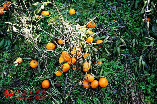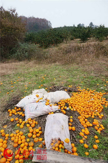 随处可见烂掉的柑桔扔在地头