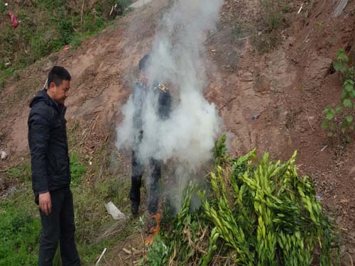 3月11日,云阳县植保植检站在巴阳镇查获烧毁一批无证调入境内贩卖的柑橘苗木。