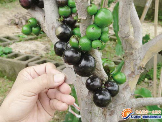 台湾树葡萄比一枚十元新台币硬币还大得多。 记者 潘薇 摄