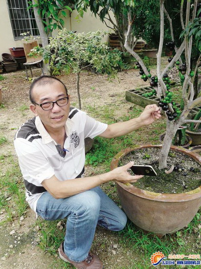 “今天你们有口福,来尝尝这两种树葡萄的味道,这两种口感完全不一样,沙巴会有点酸甜,可福岗的果肉更软,更甜。”刘宗诚热情地邀请晨报记者品尝。“树葡萄的吃法也很重要,它的果皮会比较厚,可以先咬开,慢慢吃果肉,记得吃完了要把树籽留给我,还可以种植呢,在台湾树葡萄的种子要卖到100元新台币。”刘宗诚一边说一边将地上掉落的果实捡起来,仔细取走里面的种子。