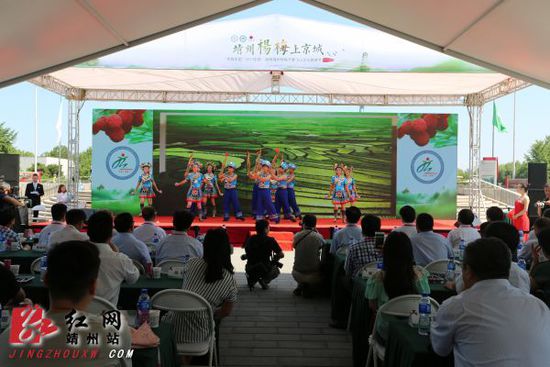 随后,主办方组织表演了国家首批非物质文化遗产―靖州苗族歌&#x;及部分特色民俗节目,为首都群众献上了一场精彩的视听盛宴。同时,主办方还向现场抽取的幸运观众赠送邀请函,欢迎他们到靖州免费旅游观光。在当天的推介会上,靖州与北京亲和力国际旅行社、北京农鲜达农产品有限公司签订合作协议,联手开发,推动靖州三宝杨梅、茯苓、山核桃等特色产业和文化旅游产业发展。