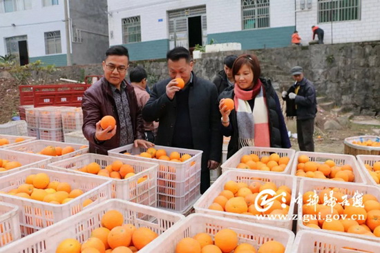 与和丰园公司开展业务合作的e趣商城武汉区总经理张志飞当天也来到了上坝村,不仅品尝了这种高端脐橙,还现场观看了脐橙采摘过程。