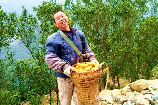 三岔乡燕子坝村贫困户杨益权和他的柑橘园。