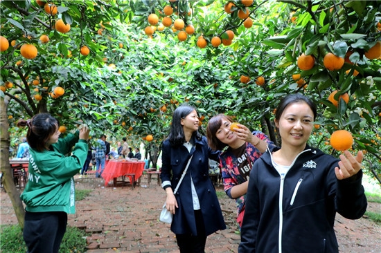目前,由于一批柑橘呈现花果同树的景观,在数公里外就能闻到花香,因此每天都要吸引5000人以上的游客前来观光旅游,既让游客有了十分接地气的观光旅游之地,又为当地农家乐带来了一笔可观的经济收入。