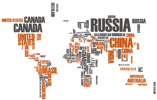 世界柑桔生产分布(红色国家名示有柑桔栽培的国家)