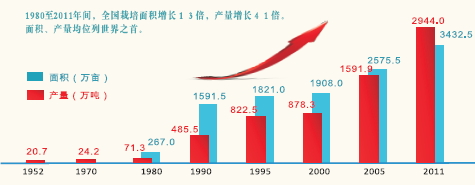 建国以来我国柑桔产业的产量、栽培面积发展趋势