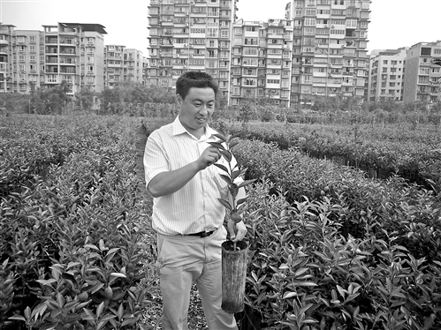 冉志林和他培育出的沃柑苗。 记者 龙丹梅 摄