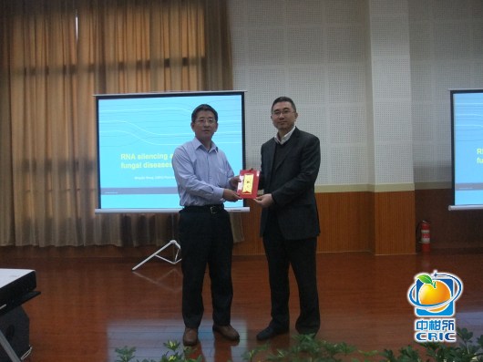 2012年11月7日上午,柑桔研究所邀请澳大利亚联邦科工组织植物研究所(CSRIO)著名植物病毒学家王明波研究员、西北农林科技大学单卫星教授以及浙江大学李红叶教授分别做了题为“RNA silencing and viral and fungal diseases in plants”、“基于病菌毒性蛋白识别及转运的作物抗病性探索”和“柑桔绿霉病菌抗药性及其分子机制”的学术报告。王明波研究员在讲座中阐述了RNA干扰植物病毒的致病机理以及在真菌和植物互作中的重要作用。单卫星教授讲述了马铃薯晚疫病菌和寄主植物之间的互作机理。李红叶教授从柑桔绿霉病菌对苯并咪唑类、嘧菌酯和DMI等杀菌剂的抗性研究作了详细的介绍。在讲座上,三位专家对科研人员及研究生提出的问题作出了详细的解答,会场上互动学术交流活跃。