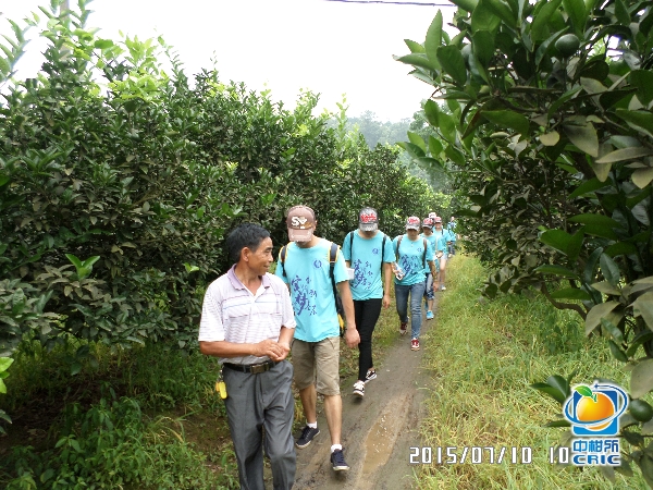 公司负责果园生产管理的张经理热情接待了实践团队的队员们,亲自带领大家到果园实地考察,并从以下几个方面为我们详细介绍了果园的管理方法:1)修剪:每年在冬季休眠期修剪一次,主要包括徒长枝的疏剪、下垂枝的修剪、疏花疏果等来调节树势、增强树冠内部的通风透光,提高果实品质;2)灌溉:采用滴灌和树冠下的微喷灌技术,呈带状灌溉。由于气候条件湿润,土壤持水能力较好,一般只在干旱的月份(8月份左右)灌溉;3)施肥:一般采用人工作业,土壤施肥,一年施用两次,分别在7月和11月。另在果实膨大期喷施保果剂,以提高果实产量;4)施药:虫害发生严重,尤其是秋稍时期,潜叶蛾、红蜘蛛、粉虱等大爆发时期施药,主要采用传统的化学药剂机械喷雾(高压动力喷雾机)防治;5)人工生草:果园采取间作豆科植物、蔬菜,增强土壤有机营养、保持水土、防止土壤板结、调节土壤温湿度、促进根系生长。