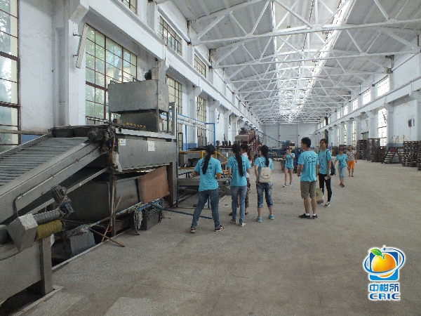 果园实地考察结束后,我们还参观了公司的商品化处理生产线,该生产线主要包括以下几道工序:1)果实采收。适时采收,保证果品质量。2)预处理,去除田间热。迅速降低果品温度,控制果实采后生理生化变化,减少微生物的入侵。3)挑选、分级。剔除有损伤、有虫害、着色度不够、外观畸形的残次品。4)清洗消毒。去除病菌和农药残留,可适当加入杀菌剂。5)保鲜处理。打蜡,抑制果实呼吸作用,减少水分和养分的消耗。6)包装。使果品免受机械损伤。经过一系列的商品化处理后,果品将被销往世界各地。