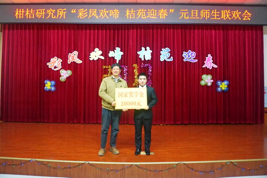 赵晓春副所长在联欢会上致辞,祝全所师生新年快乐、幸福安康,并希望在师生的共同努力下,助推我所事业发展再创新高峰。易鹏副书记宣读了《西南大学关于颁发2015-2016学年度学生奖学金的通知》和《西南大学关于表彰2015-2016学年度学生先进集体和先进个人的决定》,对过去一年里涌现出的先进个人进行了表彰。金鑫同学作为获奖学生代表上台发言,分享了自己的学习经历与感悟。