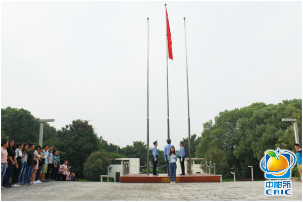 张群琳同学代表全体研究生同学在国旗下庄严承诺:第一,坚定理想信念,把勇攀科研高峰作为追求目标,为中国柑桔科技创新贡献自己的一份力量;第二,潜心钻研付出,在科研道路上执着进取、持之以恒,努力实现自己的学术梦想;第三,甘于平淡枯燥,既要有突破前人的勇气,也要有甘于平淡的定力,在平淡与乏味中做好自己的本职工作。