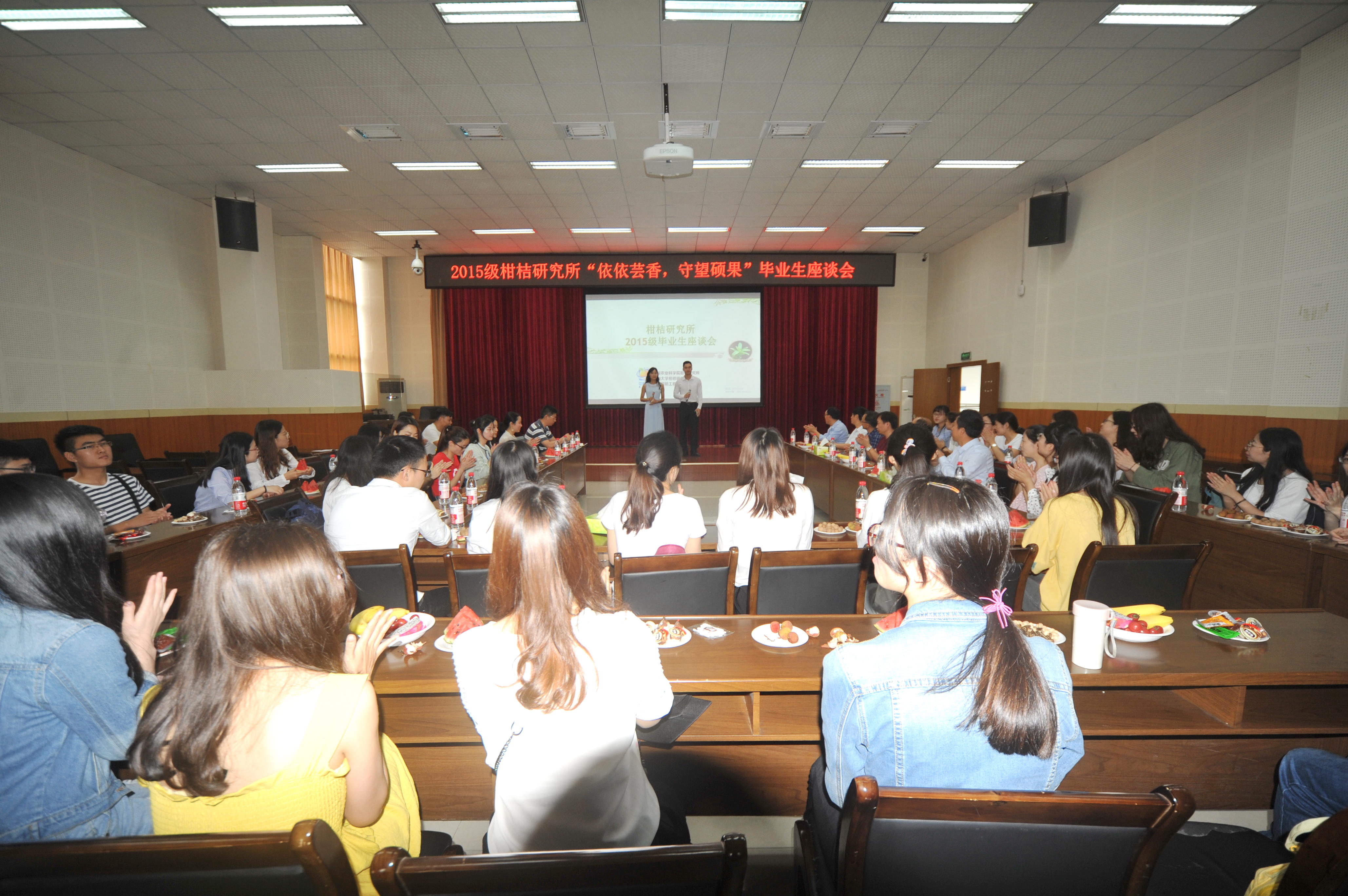 伴随着大屏幕上各个课题组的毕业祝福视频的播放,同学们陆续入场,9点30分,座谈会正式开始,首先党委副书记易鹏致辞,他向毕业生提出要有四个“气”,即振兴民族之志气,壹志嘉树之勇气,修远求索之锐气,宽以待人之底气。并表示“一入柑桔门,永是柑桔人”,柑桔研究所永远是大家的支撑和港湾。各位导师也依次祝贺大家顺利完成学业,并结合自己多年工作经验和人生感悟真心真切的给予全体毕业生临别赠言。最后,赵晓春副所长总结发言,希望同学们在以后的工作学习中运用所学到的知识和经验,把工作做好,把日子过好,赢得事业家庭双丰收。
