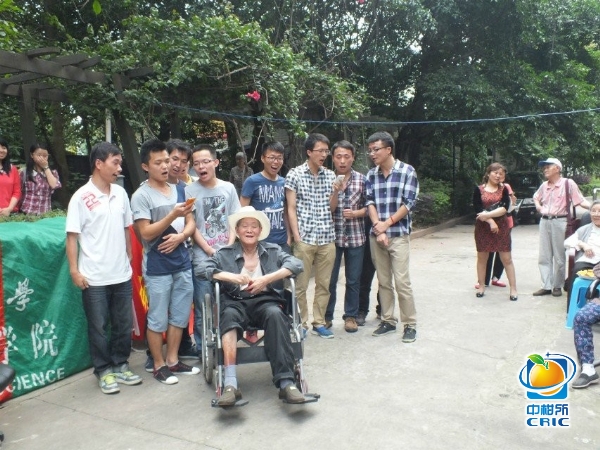 5月24日下午2点,同学们带上慰问品来到位于北碚区龙溪路32号天奇花园内的天宇星光老年公寓。活动分为两个部分,首先,同学们来到公寓里陪老人们聊天,帮他们整理房间、打扫卫生。随后,大家围坐在老年公寓楼下简单布置的会场里,老人们一边品尝同学们带去的水果点心,一边欣赏大家精心排练的节目,气氛轻松愉快,其乐融融。