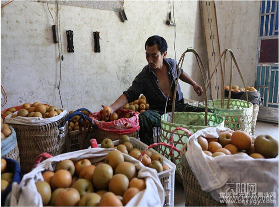 云阳县高阳镇晚熟水晶梨肉质细腻,致密嫩脆,汁液多,且果实耐贮运,9月初上市;云安镇利用当地冷白沙土壤,种出的雪梨脆甜可口,肉甜汁多,品质优良,现已在淘宝等大型电子商城上打造云安土特产自己的B2C、O20等销售平台。