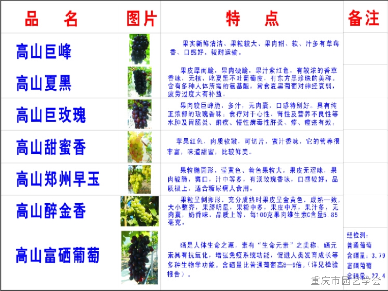 纯天然、无污染的腊梅高山葡萄园,位于重庆市国家级AAAAA景区――神龙峡景区。梅高山葡萄园隶属重庆丛发农业发展有限公司,本公司成立于2013年,位于重庆市南川区南平镇永安村四社,主要经营水果种植及销售、苗木种植及销售、农业观光旅游等,规划占地500亩,投资2000万元打造集采摘水果、休闲观光、旅游为一体的现代化农业园。腊梅高山葡萄园毗邻国家AAAAA景区金佛山,海拔高,一年四季光照充足,昼夜温差大,享受无污染空气,纯净高山泉水。目前已种植200亩巨玫瑰、夏黑、醉金香等高品质葡萄。技术负责人廖腊梅女士从事葡萄种植已十余年,经验丰富,擅长精耕细作,科学的控制产量。为了让你品尝到生态、绿色、优质、安全的葡萄,我们承诺:绝不使用低效高毒残留的农药;坚持使用农家肥、废菌包改良土壤,致力增加土壤中的有机质含量。每年的7月至9月,这里将硕果累累,我们不但为你提供大量优质鲜食葡萄、礼品葡萄及自主进园采摘,另外还长期供应各种优质葡萄苗和葡萄酒。在这里,你将感受南国吐鲁番的别样风情,在你游山玩水的同时享受葡萄美食盛宴。我们将打造重庆第一家“富硒葡萄”。我们的注册商标为“腊梅”葡萄,我们的宗旨是优质、生态、绿色、安全。公司从成立到现在,我们用心血和汗水铺就一片葡萄园胜地,感谢社会各界长期以来对公司扶持和关爱!我们也将营造热情开放、真诚协作、开拓进取的共赢氛围,欢迎各界前来我葡萄园参观、品尝、采摘!