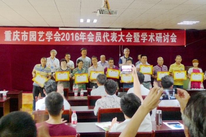 本次会议收到论文60篇,从中评选出2015年度“重庆市锦程杯”优秀论文一等奖3篇,二等奖10篇,三等奖20篇;从相关单位选送的20余个夏季园艺产品中评选出2016年重庆优质夏季园艺产品10个。重庆市锦程实业有限公司对获奖论文予以了奖励。