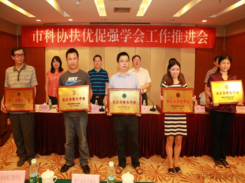 会上,程伟宣读了市科协关于命名重庆市标兵学会、示范学会、特色学会的决定,市科协为10个标兵学会、10个示范学会和30个特色学会分别授了牌。重庆市园艺学会在学会领导们的带领下,在各会员单位的共同努力下,取得的成绩得到市科协的认可,被市科协授予特色学会的光荣称号。