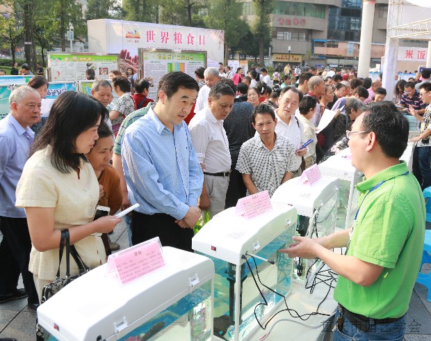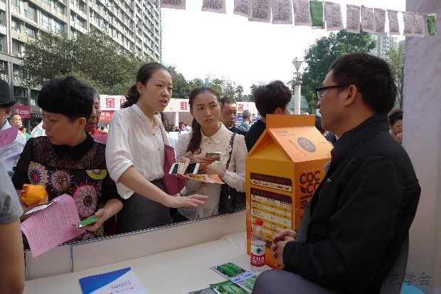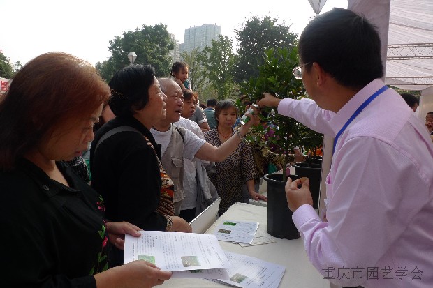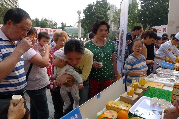 2015年10月22日,由重庆市科协主办的世界粮食日科普宣传活动在沙坪坝区小龙坎广场隆重举行。重庆市科协市科协党组书记、常务副主席黄明会、学会部雷颖茹部长等莅临现场检查指导,挂靠我所的重庆市园艺学会和重庆市柑桔学会联合,组织专家队伍和会员单位参与了相关活动。果蔬质量安全专家王成秋副研究员、果品贮藏保鲜专家王日葵副研究员、病虫害防治专家丛林博士、花卉栽培专家邸青助理研究员、土壤肥料专家王树良副研究员、南方果树信息中心记者董朝菊和无人机技术研究生张盼等,以及学会团体会员单位中国农科院柑橘研究所、农业部柑橘及苗木质检中心、重庆市农科院蔬菜花卉所、可士可果业股份有限公司参加了本次活动。