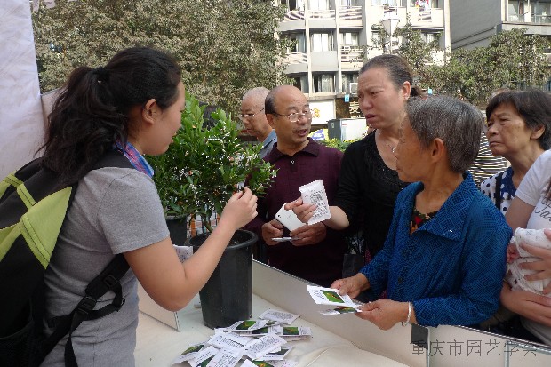 围绕今年世界粮食日“社会保护与农业,打破农村贫困恶性循环”主题,结合重庆柑桔学会、重庆市园艺学会工作领域的特色,学会高度重视本次活动,学会领导和秘书处反复研究参与方式和内容,以果蔬产品质量安全标准与检测、营养功能、安全生产与经营等全产业链质量安全知识、保护生态环境-珍惜土地资源、蔬菜设施栽培技术为主题,以展板+实物为表现形式,向广大市民发放了家居盆栽蔬菜种植技术科普资料800份、生物防治天敌500余袋、植物叶面铁肥300袋、蔬菜良种400袋,让市民现场品鉴当季柑桔水果和非还原橙汁(NFC)饮品,接受近千名市民咨询和答疑,专家们就广大市民关注的食品农产品质量安全、果蔬土肥水管理、栽培、修剪、病虫害防治等问题进行了耐心细致的解答。