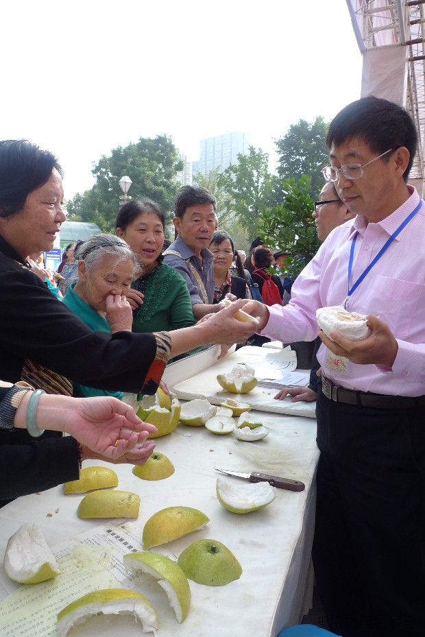 世界粮食日活动学会专家向市民分发安全优质柚果品尝场景