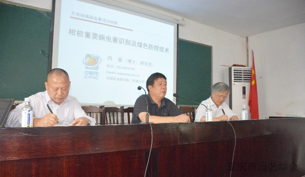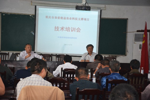 2015年10月23~24日重庆市农委特色效益农业技术支撑项目“万州晚熟塔罗科血橙优质高效技术链集成示范”阶段总结汇报会在重庆市万州区玫瑰香橙产业基地甘宁镇举行。项目组成员和重庆市农委特经处洪国伟处长,万州区农委果树站许兴权站长、汪小伟副站长,万州区科委办公室许主任和刘一凡科长,以及玫瑰香橙专业合作社及微型企业负责人参加了汇报会。会议由项目首席专家邓烈研究员主持,专家团队分别就“血橙新品种评价与选育、“山地血橙园精准施肥”、“血橙郁闭果园树形优化改造、“血橙贮藏性能提升与优质高效贮藏”、“血橙基地主要病虫害调查评价与绿色防控”、“万州塔罗科血橙营养品质分析与安全生产”和“机械化示范”等研究工作进展作了总结汇报,专业合作社及微型企业负责人就关心的问题进行了互动讨论,主洪国伟处长和徐兴权站长进行了总结讲话。洪国伟处长讲话指出,万州血橙是我市最具特色和效益显著的一个高效农业典范,由于特色显著、产业发展潜力巨大、效益可观,因此特到了快速发展,也为兴农扶贫发挥了重要作用。为了依靠科技推动产业健康发展,市农委向中国农科院柑桔研究所下达了“万州晚熟塔罗科血橙优质高效技术链集成示范”项目。从项目实施一年来的进展看,本项目经费不多,效果显著,特别是中柑所高度重视这一项目和相关工作,组成多学科的年轻科技人员开展针对性技术创新和产业服务,大多数研究内容取得显著成效,新品种选育评价、营养标签研制、精准施肥处方图研发、绿色防控和鲜果耐贮藏和长货架期技术研发、智能对靶施肥施药装备研制集成等研究工作取得重要进展,一些新技术已经开始示范推广,对于推动万州玫瑰香橙科技进步、效益提升和可持续发展将发挥重要影响和巨大科技支撑作用。应玫瑰香橙专业合作社及微型企业要求,项目组专家对于玫瑰香橙基地的业主和技术骨干进行了现场技术培训,受训的血橙基地果园业主和果农认真地参加了培训,并与专家进行了互动讨论,深感受益匪浅。
