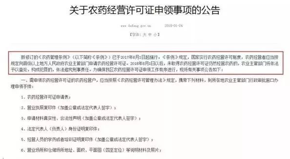 新《农药管理条例》规定国家要实行农药经营许可制度,而申请《农药经营许可证》是农药经营者身份合法化、经营合法化的第一步。2018年8月1日将会是全国6万家市县级农资经销商和80万家农资零售商的一道坎,为什么这么说?