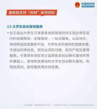即日起,中国政府网新媒体将推出国务院支持“双创”系列百科,针对不同创业群体、不同创业问题,逐一详细梳理。