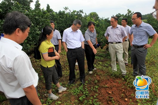 6月19-24日,应农业部种植业司邀请,周常勇研究员作为专家组组长,赴广东江门市新会区、清远市佛冈县及江西赣州市信丰县、安远县开展黄龙病防控工作专题调研,除对4县的10余个果园基地进行实地调研外,尚与2省3市5县的部分管理部门领导、技术员、合作社和果农代表进行了4场座谈,并协助组织完成了调研报告。专家组成员还有中国科学院动物研究所张润志研究员、华中农业大学彭抒昂教授、华南农业大学邓晓玲教授、农业部种植业管理司植保植检处王建强副处长和全国农业技术推广中心植物检疫处冯晓东副处长。