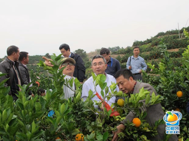 赣州市果业局局长吴至海、副局长陈标强,国家脐橙工程技术中心钟八莲主任等陪同调研。(王雪峰供稿)