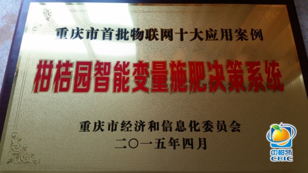 柑桔园智能变量施肥决策系统获“重庆市首批物联网十大应用案例”