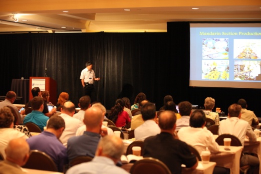 大会由美国佛罗里达大学食品科学与人类营养学院和食品和农业科学研究所主办,Vincent Corporation等20多家企业联合协办。来自中国、美国、巴西、西班牙、墨西哥、阿根廷、智利、加拿大、意大利、法国、英国、德国、日本、韩国、印度、以色列等30多个国家的柑桔和饮料生产、设备制造与经售企业,科研院所、大专院校和管理部门的代表500多人。此次会议是近年来参会代表最多的一次大会,大会聚焦“全球果汁和饮料技术的市场和产品创新”,讨论了新的食品法规对产业的影响,加工技术、产品质量和消费需求的进步,产业发展的新思维、新视角,黄龙病防治等焦点问题。